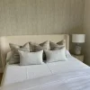 La Cama Calyra fusiona elegancia contemporánea con comodidad envolvente. Su cabecero con ligera curvatura y su estructura baja con tapizado bouclé crean una presencia cálida y sofisticada que redefine el espacio de descanso.