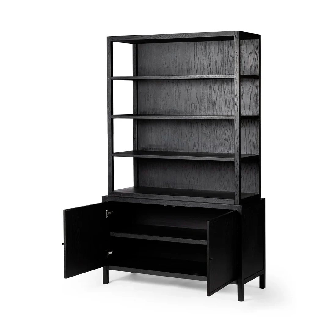 ✅ Configuración mixta – Estantes abiertos combinados con puertas inferiores, ideal para mostrar piezas o mantener orden.